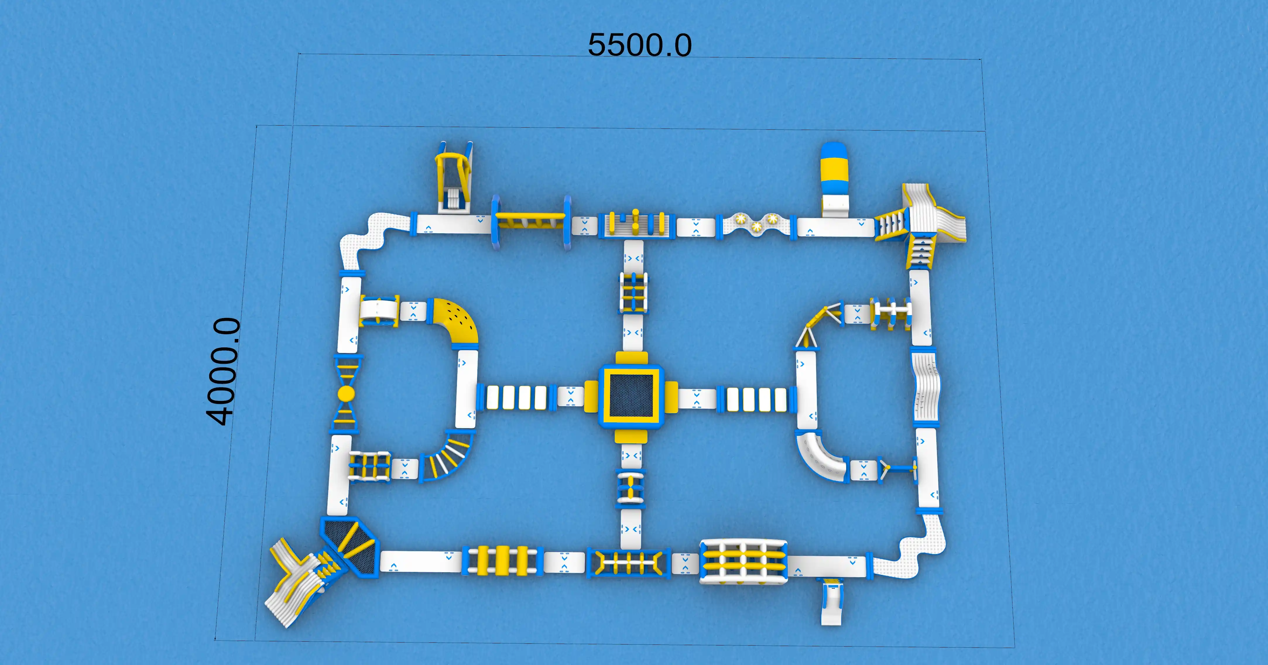 حديقة مائية ضخمة قابلة للنفخ بمساحة 55 مترًا × 40 مترًا لمتعة عائلية لا مثيل لها